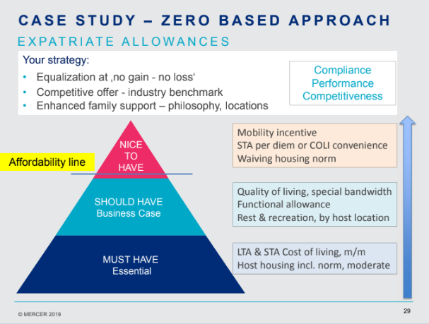 Applying zero-based philosophies to re-define your expatriate compensation packages starts with revisiting and confirming your remuneration strategy. You might ask: